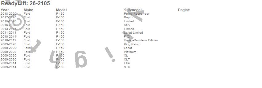 Below is an abbreviated list of applications for the Rear Block Kit.F-150, Ford, 2020, 2019, 2018, 2017, 2016, 2015, 2014, 2013, 2012, 2011, 2010, 2009