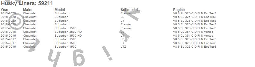 Below is an abbreviated list of applications for the Custom Molded Mud Guards.Suburban, Suburban 1500, Suburban 3500 HD, Chevrolet, 2020, 2019, 2018, 2017, 2016, 2015
