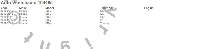 Below is an abbreviated list of applications for the Ventvisor In-Channel Deflector 4 pc..CR-V, Honda, 2016, 2015, 2014, 2013, 2012