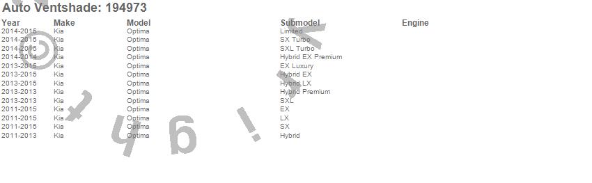 Below is an abbreviated list of applications for the Ventvisor In-Channel Deflector 4 pc..Optima, Kia, 2015, 2014, 2013, 2012, 2011