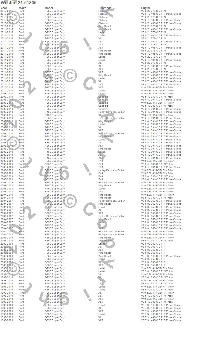 Below is an abbreviated list of applications for the PRO TRAXX 5 Oval Nerf Step Bars.F-250 Super Duty, F-350 Super Duty, F-450 Super Duty, Ford, 2016, 2015, 2014, 2013, 2012, 2011, 2010, 2009, 2008, 2007, 2006, 2005, 2004, 2003, 2002, 2001