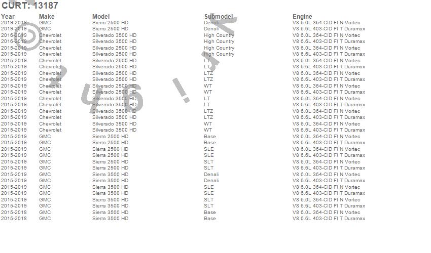 Below is an abbreviated list of applications for the Class III 2 in. Receiver Hitch.Sierra 2500 HD, Sierra 3500 HD, Silverado 2500 HD, Silverado 3500 HD, Chevrolet, GMC, 2019, 2018, 2017, 2016, 2015