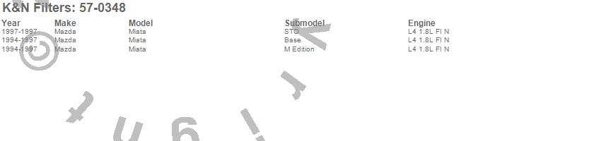Below is an abbreviated list of applications for the 57i Series Induction Kit.Miata, Mazda, 1997, 1996, 1995, 1994