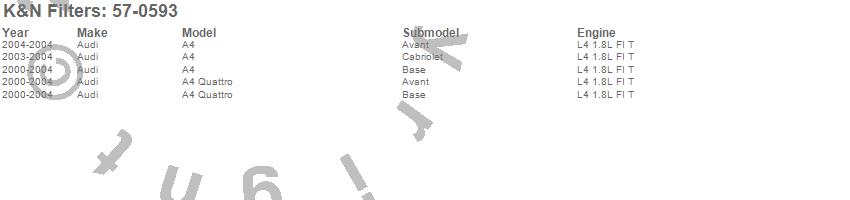 Below is an abbreviated list of applications for the 57i Series Induction Kit.A4, A4 Quattro, Audi, 2004, 2003, 2002, 2001, 2000
