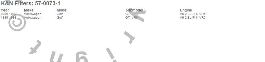 Below is an abbreviated list of applications for the 57i Series Induction Kit.Golf, Volkswagen, 1999, 1998, 1997, 1996, 1995