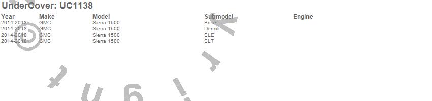 Brand: UnderCoverPart Number: UC1138Tonneau Cover Type: Black TexturedUPC: 897197007178