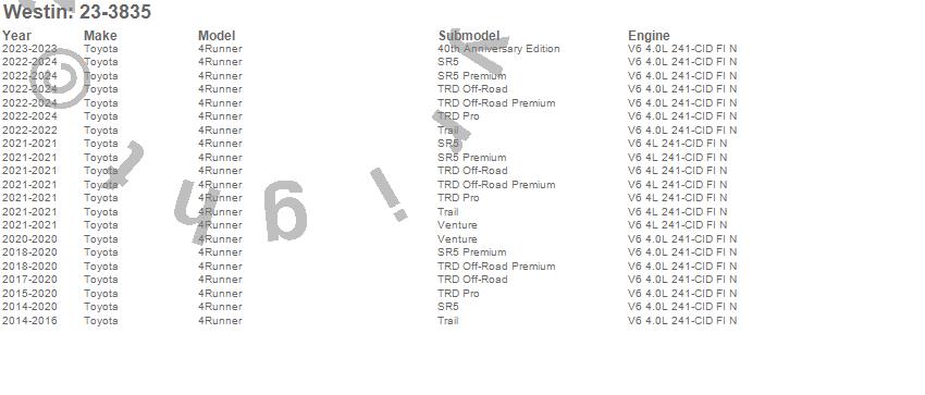 Brand: WestinPart Number: 23-3835Nerf/Step Bar Type: Black - Steel - Mount Kit Included - Rocker MountUPC: 707742059814