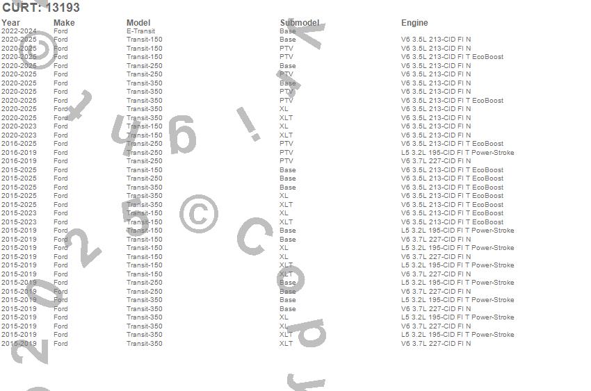 Below is an abbreviated list of applications for the Class III 2 in. Receiver Hitch.E-Transit, Transit-150, Transit-250, Transit-350, Ford, 2026, 2025, 2024, 2023, 2022, 2021, 2020, 2019, 2018, 2017, 2016, 2015