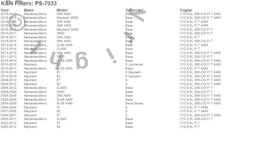 Below is an abbreviated list of applications for the High Flow Oil Filter.57, 62, CL600, CL65 AMG, G65 AMG, Maybach S600, S600, S65 AMG, SL600, SL65 AMG, Maybach, Mercedes-Benz, 2018, 2017, 2016, 2015, 2014, 2013, 2012, 2011