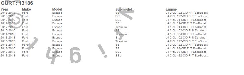 Below is an abbreviated list of applications for the Class III 2 in. Receiver Hitch.Escape, Ford, 2019, 2018, 2017, 2016, 2015, 2014, 2013
