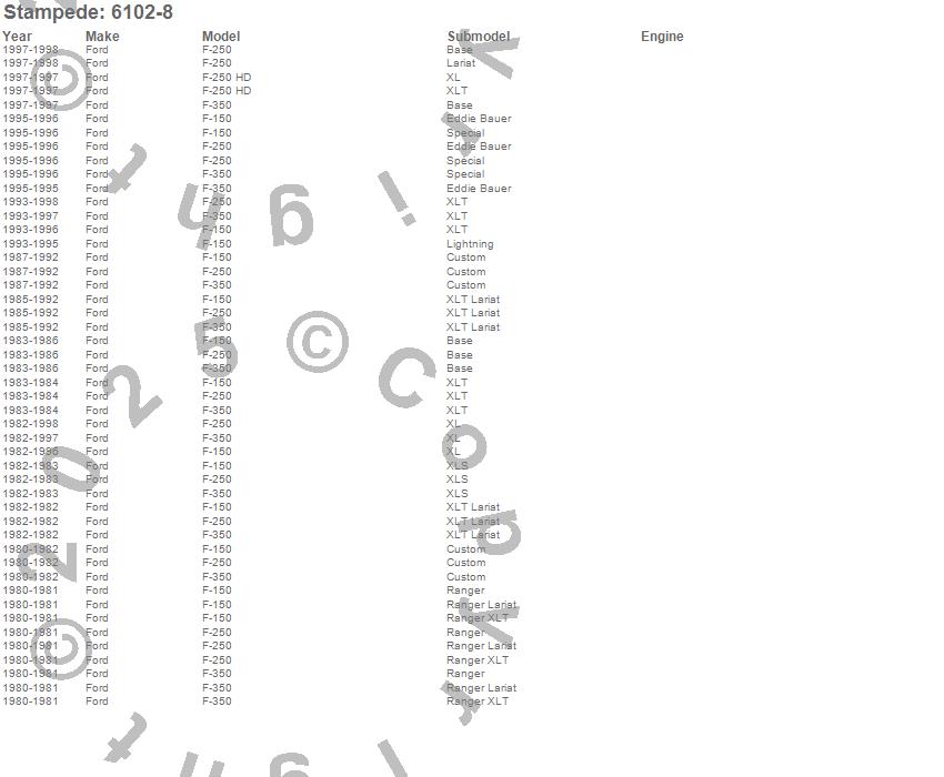 Below is an abbreviated list of applications for the Tape-Onz Sidewind Deflector 2 pc..F-150, F-250, F-250 HD, F-350, Ford, 1998, 1997, 1996, 1995, 1994, 1993, 1992, 1991, 1990, 1989, 1988, 1987, 1986, 1985, 1984