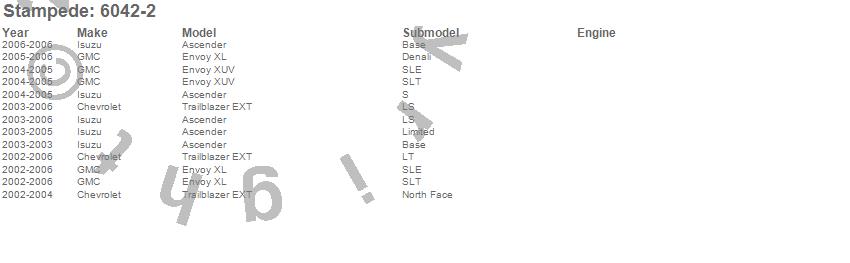 Below is an abbreviated list of applications for the Tape-Onz Sidewind Deflector 4 pc..Ascender, Envoy XL, Envoy XUV, Trailblazer EXT, Chevrolet, GMC, Isuzu, 2006, 2005, 2004, 2003, 2002