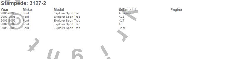 Below is an abbreviated list of applications for the Vigilante Premium Hood Protector.Explorer Sport Trac, Ford, 2005, 2004, 2003, 2002, 2001