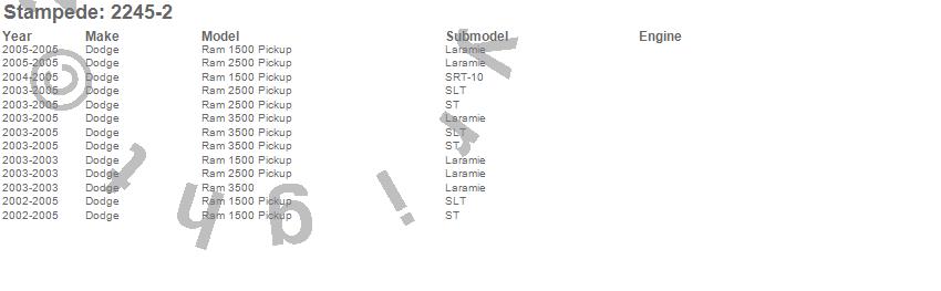 Below is an abbreviated list of applications for the Vigilante Premium Hood Protector.Ram 1500, Ram 2500, Ram 3500, Dodge, 2005, 2004, 2003, 2002