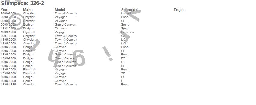 Below is an abbreviated list of applications for the Vigilante Premium Hood Protector.Caravan, Grand Caravan, Town & Country, Voyager, Chrysler, Dodge, Plymouth, 2000, 1999, 1998, 1997, 1996