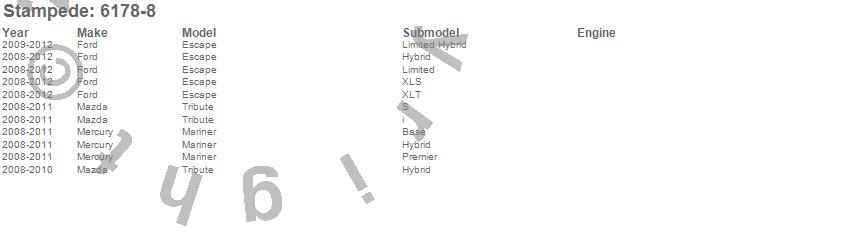 Below is an abbreviated list of applications for the Tape-Onz Sidewind Deflector 4 pc..Escape, Mariner, Tribute, Ford, Mazda, Mercury, 2012, 2011, 2010, 2009, 2008