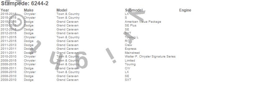 Below is an abbreviated list of applications for the Tape-Onz Sidewind Deflector 2 pc..Grand Caravan, Town & Country, Chrysler, Dodge, 2015, 2014, 2013, 2012, 2011, 2010, 2009, 2008