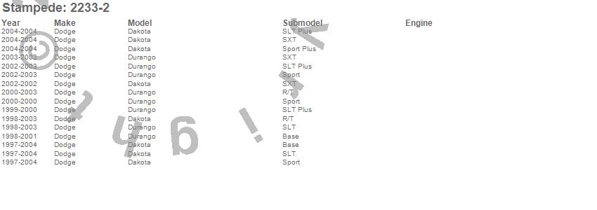 Below is an abbreviated list of applications for the Vigilante Premium Hood Protector.Dakota, Durango, Dodge, 2004, 2003, 2002, 2001, 2000, 1999, 1998, 1997