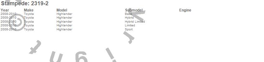 Below is an abbreviated list of applications for the Vigilante Premium Hood Protector.Highlander, Toyota, 2010, 2009, 2008
