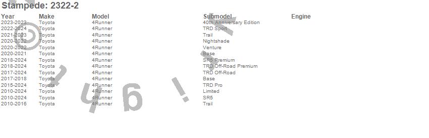 Below is an abbreviated list of applications for the Vigilante Premium Hood Protector.4Runner, Toyota, 2019, 2018, 2017, 2016, 2015, 2014, 2013, 2012, 2011, 2010