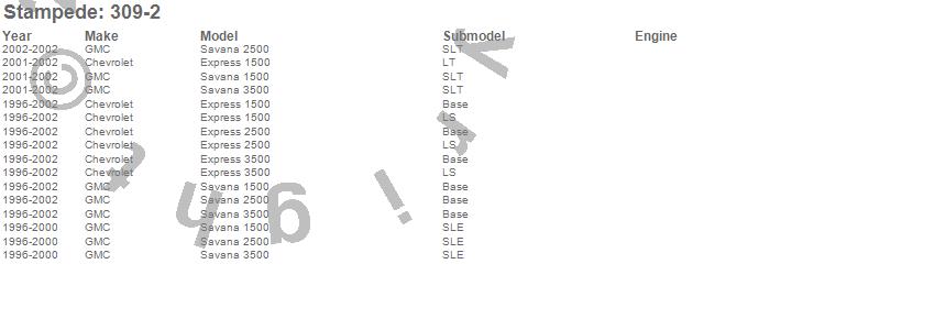 Below is an abbreviated list of applications for the Vigilante Premium Hood Protector.Express 1500, Express 2500, Express 3500, Savana 1500, Savana 2500, Savana 3500, Chevrolet, GMC, 2002, 2001, 2000, 1999, 1998, 1997, 1996