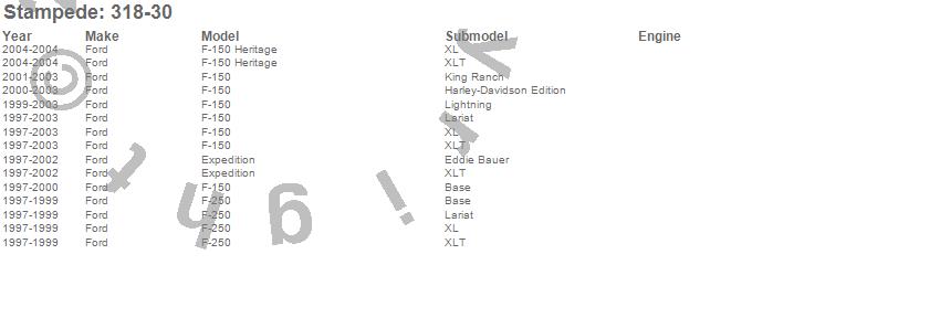 Below is an abbreviated list of applications for the Vigilante Premium Hood Protector.Expedition, F-150, F-150 Heritage, F-250, Ford, 2004, 2003, 2002, 2001, 2000, 1999, 1998, 1997