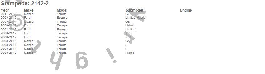 Below is an abbreviated list of applications for the Vigilante Premium Hood Protector.Escape, Tribute, Ford, Mazda, 2012, 2011, 2010, 2009, 2008