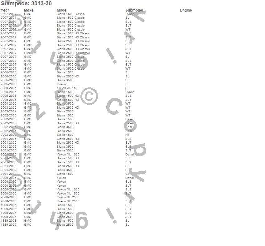 Below is an abbreviated list of applications for the Vigilante Premium Hood Protector.Sierra 1500, Sierra 1500 Classic, Sierra 1500 HD, Sierra 1500 HD Classic, Sierra 2500, Sierra 2500 HD, Sierra 2500 HD Classic, Sierra 3500, Sierra 3500 Classic, Yukon, Yukon XL 1500, Yukon XL 2500, GMC, 2007, 2006, 2005, 2004, 2003, 2002, 2001