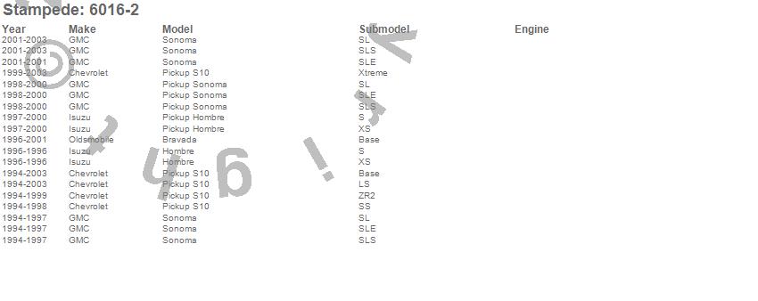 Below is an abbreviated list of applications for the Tape-Onz Sidewind Deflector 2 pc..Bravada, S10 Pickup, Sonoma, Chevrolet, GMC, Oldsmobile, 2003, 2002, 2001, 2000, 1999, 1998, 1997, 1996, 1995, 1994