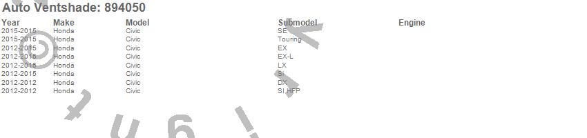 Below is an abbreviated list of applications for the Ventvisor Low Profile Deflector 4 pc..Civic, Honda, 2015, 2014, 2013, 2012