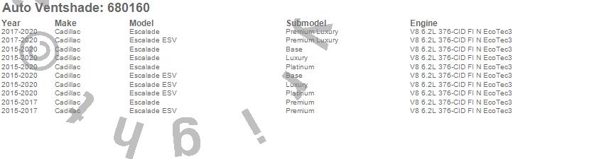 Below is an abbreviated list of applications for the Chrome Hood Shield.Escalade, Escalade ESV, Cadillac, 2020, 2019, 2018, 2017, 2016, 2015