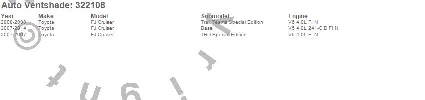 Below is an abbreviated list of applications for the Aeroskin Smoke Hood Protector.FJ Cruiser, Toyota, 2014, 2013, 2012, 2011, 2010, 2009, 2008, 2007