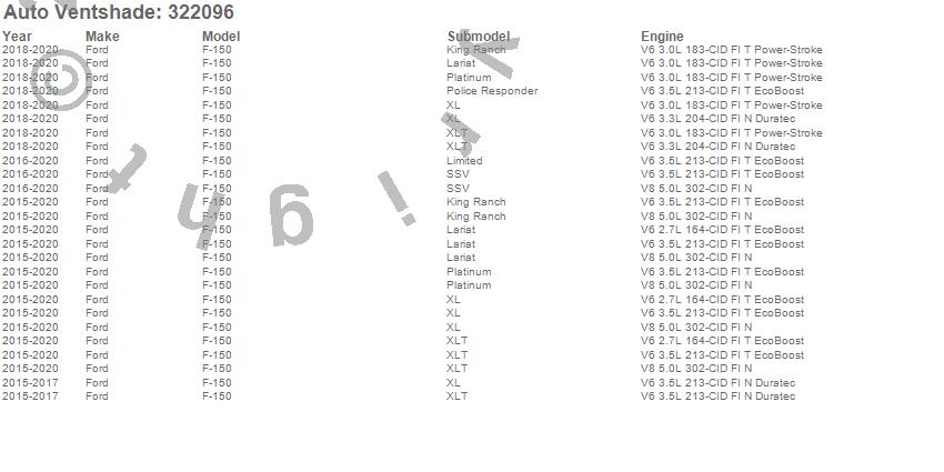 Below is an abbreviated list of applications for the Aeroskin Smoke Hood Protector.F-150, Ford, 2020, 2019, 2018, 2017, 2016, 2015