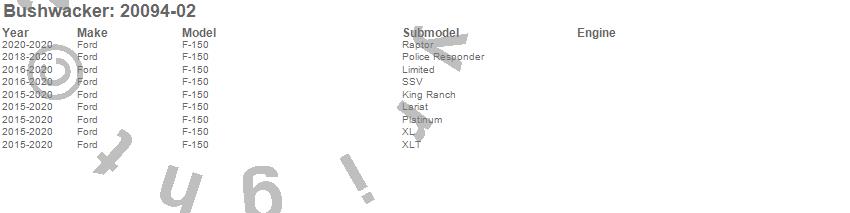 Below is an abbreviated list of applications for the Extend-A-Fender Flares.F-150, Ford, 2020, 2019, 2018, 2017, 2016, 2015