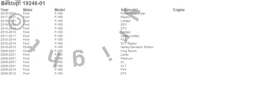 Brand: BestopPart Number: 19246-01Tonneau Cover Type: BlackUPC: 077848128999