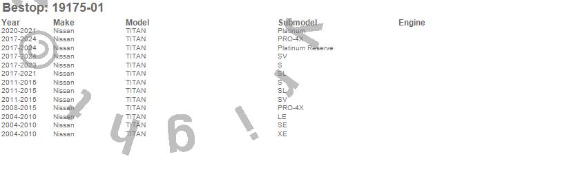 Brand: BestopPart Number: 19175-01Tonneau Cover Type: BlackUPC: 077848128852