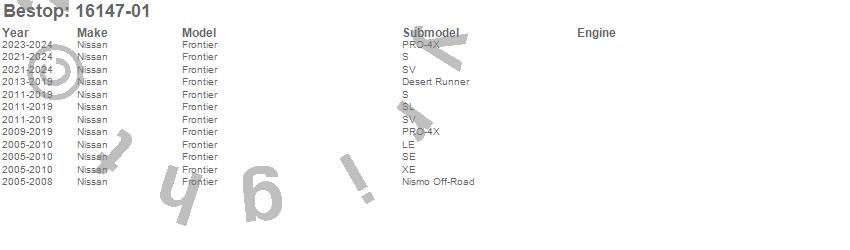 Below is an abbreviated list of applications for the EZ Fold Soft Tri-Fold Tonneau Cover.Frontier, Nissan, 2025, 2024, 2023, 2022, 2021, 2019, 2018, 2017, 2016, 2015, 2014, 2013, 2012, 2011, 2010, 2009, 2008, 2007