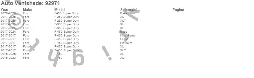 Below is an abbreviated list of applications for the Ventvisor Deflector 2 pc..F-150, F-250 Super Duty, F-350 Super Duty, F-450 Super Duty, F450 Super Duty, Ford, 2026, 2025, 2024, 2023, 2022, 2021, 2020, 2019, 2018, 2017, 2016, 2015
