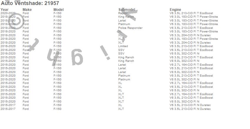 Below is an abbreviated list of applications for the Hoodflector Hood Protector.F-150, Ford, 2020, 2019, 2018, 2017, 2016, 2015