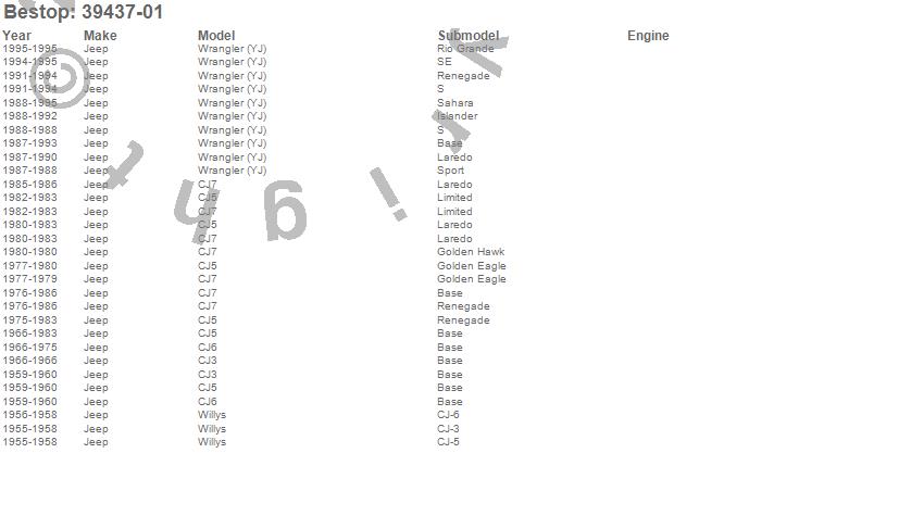 Below is an abbreviated list of applications for the Trailmax II Fixed Back Seat.CJ3, CJ5, CJ6, CJ7, Willys, Wrangler (YJ), Jeep, 1995, 1994, 1993, 1992, 1991, 1990, 1989, 1988, 1987, 1986, 1985, 1984, 1983