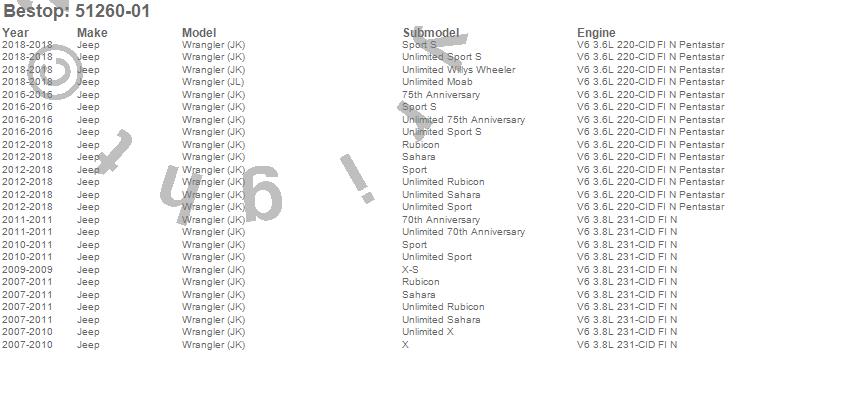 Below is an abbreviated list of applications for the Mirror Replacement Set.Wrangler (JK), Wrangler (JL), Jeep, 2018, 2017, 2016, 2015, 2014, 2013, 2012, 2011, 2010, 2009, 2008, 2007