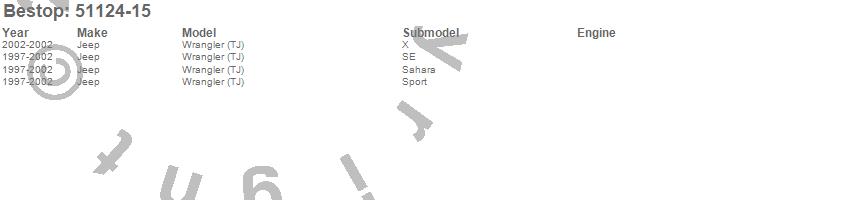 Below is an abbreviated list of applications for the Replace-A-Top.Wrangler (TJ), Jeep, 2002, 2001, 2000, 1999, 1998, 1997