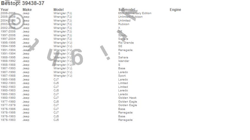 Brand: BestopPart Number: 39438-37Seat Type: Spice - Front - High-Back - Vinyl w/Center Fabric Insert - Bucket - Driver Or Pass Side - Req. Seat Adapter PN[51256-01] Per SeatUPC: 077848028084