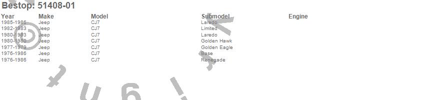 Below is an abbreviated list of applications for the Tigertop Soft Top.CJ7, Jeep, 1986, 1985, 1984, 1983, 1982, 1981, 1980, 1979, 1978, 1977, 1976