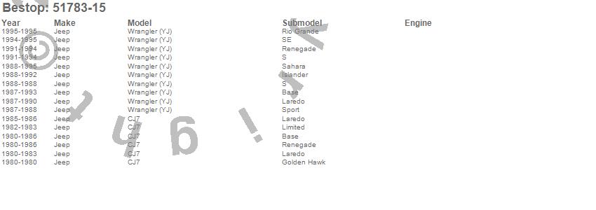 Brand: BestopPart Number: 51783-15Door Type: Black Denim - 2 pc. - Front - Fits PN[51603/51698/53818]UPC: 077848048099
