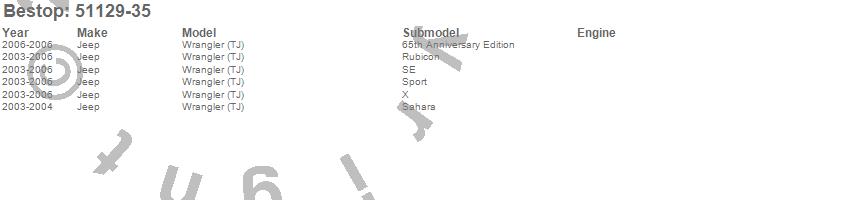 Below is an abbreviated list of applications for the Replace-A-Top.Wrangler (TJ), Jeep, 2006, 2005, 2004, 2003