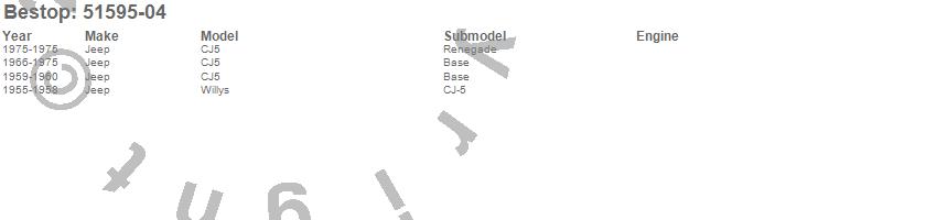 Below is an abbreviated list of applications for the Supertop Classic Squareback Soft Top.CJ5, Willys, Jeep, 1975, 1974, 1973, 1972, 1971, 1970, 1969, 1968, 1967, 1966, 1960, 1959, 1958, 1957, 1956, 1955