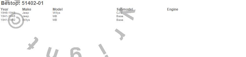 Below is an abbreviated list of applications for the Tigertop Soft Top.MB, Willys, Jeep, Willys, 1949, 1948, 1947, 1946, 1945, 1944, 1943, 1942, 1941