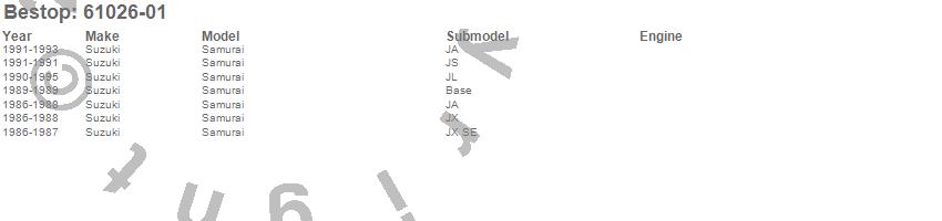 Below is an abbreviated list of applications for the Spare Tire Cover.Samurai, Suzuki, 1995, 1994, 1993, 1992, 1991, 1990, 1989, 1988, 1987, 1986