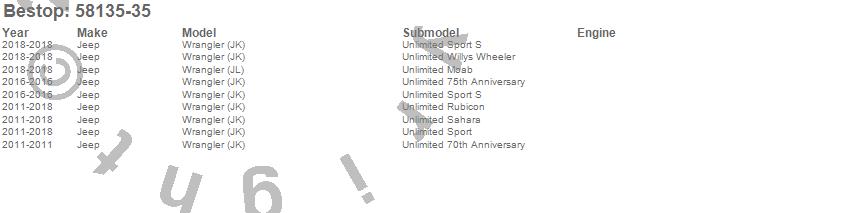 Below is an abbreviated list of applications for the Window Replacement Set.Wrangler (JK), Wrangler (JL), Jeep, 2018, 2017, 2016, 2015, 2014, 2013, 2012, 2011